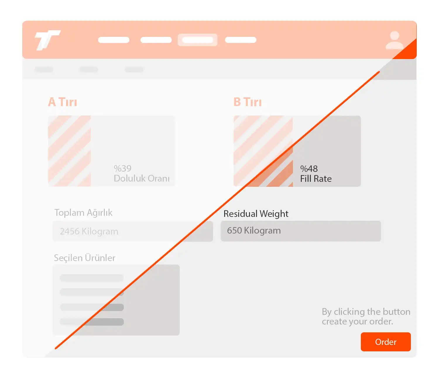 Sipariş esnasında online Konteyner / Tır doluluk oranı gösterimi.