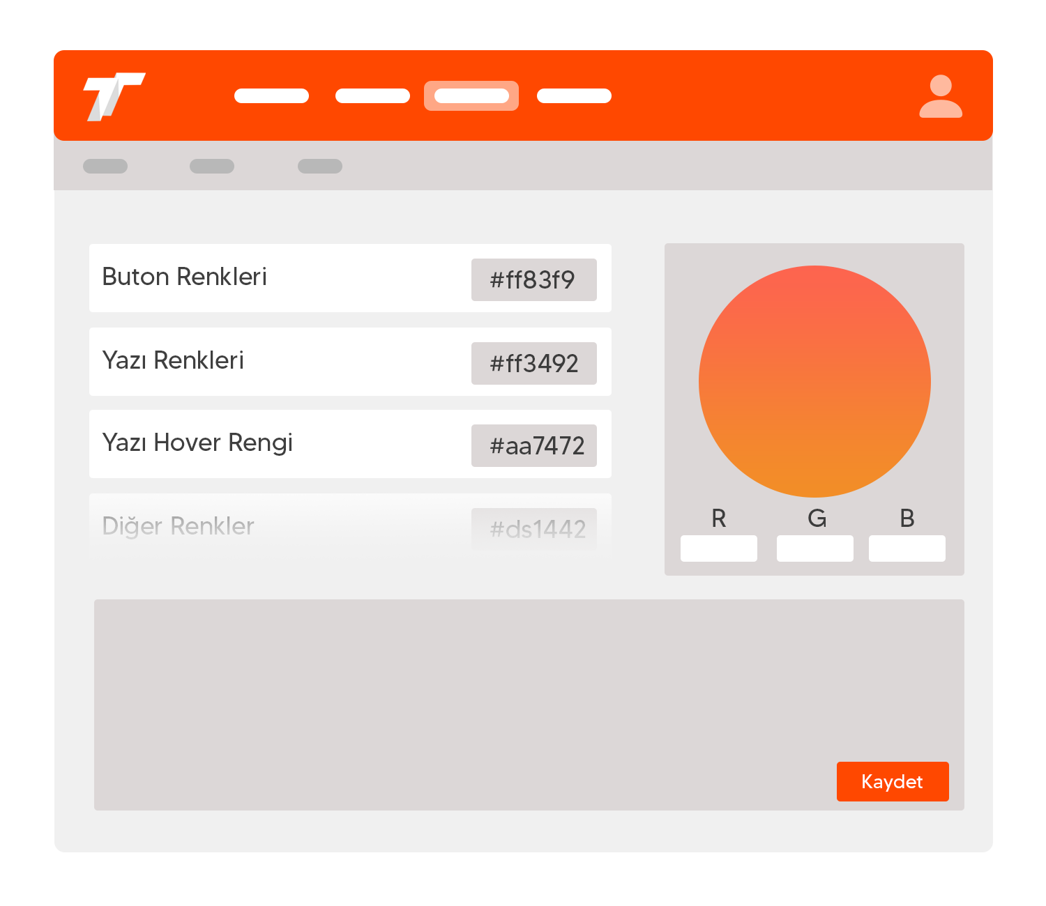 Kontrol panelinizin renk ayarlar kısmını kullanarak yazı renkleri, arka plan renkleri, buton renkleri gibi bir çok detayın rengini özelleştirin.